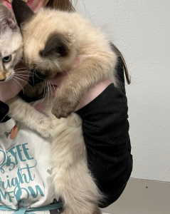 Astoria, female, 5.5 months, vaccinated, rabies shot, micro chipped, spayed. skiddish, will need time to adjust, loves other cats. accepting applications!